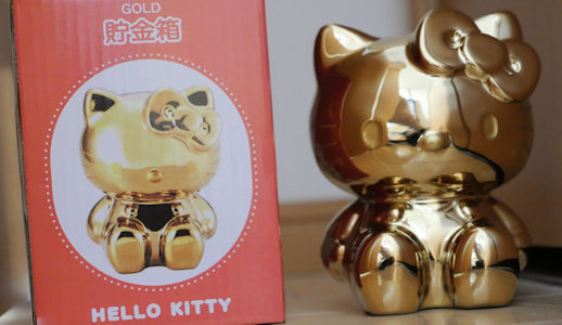 サンリオキャラクターズのグッズが1,000種類以上登場する3Dのパズルゲーム 「ハローキティ マーチマッチ」。Xでの「リリース記念黄金のキャンペーン4日目」に応募したところ「黄金のハローキティ貯金箱」が当選しました。キラキラの貯金箱、とっても縁起が良さそう。この黄金の貯金箱はゲームにも登場します。幸運にも当選したのでゲーム内でこの貯金箱が出てくると嬉しくなってしまいます。