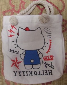 オーバーオールキティちゃんそのものの形をした可愛いトートバッグ。