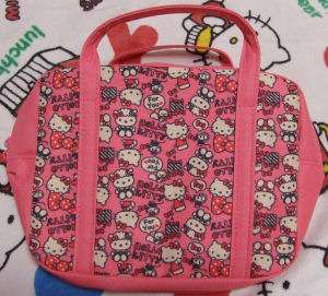旅行の時にいつも使っている、キティちゃんのボストンバッグです。旅行が倍楽しくなります。ポーチ付き。