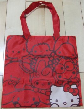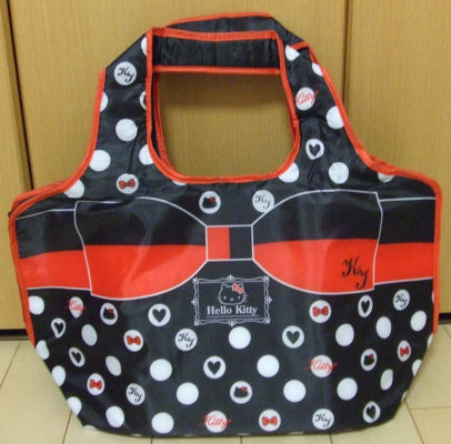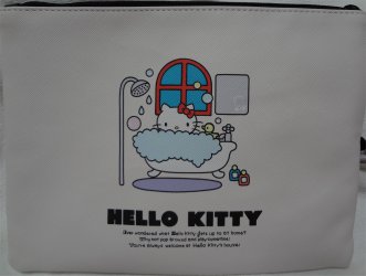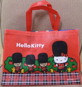 旅行の時、お泊まりセット等を入れています。羽田空港で買いました。「Hello Kitty」のロゴの下には、「BON VOYAGE!」と書いてあります。