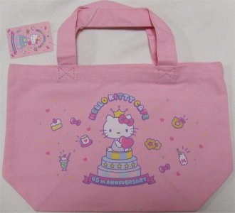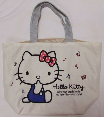 沢山入るキティちゃん50周年デザインのトートバッグ。表と裏で表情が違うのがまた可愛い!