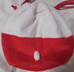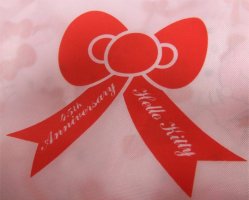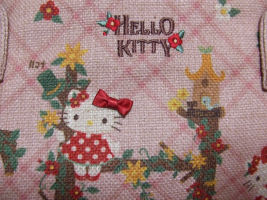 大きめなので、お出掛けにも使えます。かなりインパクトが有りますが、私は、キティちゃんファンよ!という事で、堂々と使っちゃっています。こちらはリボンがお花で、小さい方と微妙にデザインが違います。