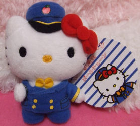 可愛いパーサーキティちゃんのマスコット。ワゴンもきちんと付いています。制服が似合いますね。お友達からお土産で頂きました。