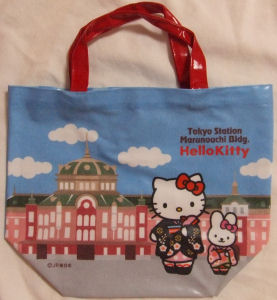 ホテル三日月 ハローキティルームに宿泊した際、頂いたバッグ。右が富士山ルーム、左が竜宮城ルームのものです。
