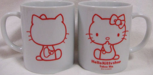 キティちゃんがかっぱとお座りしている微笑ましい絵柄のマグカップです。