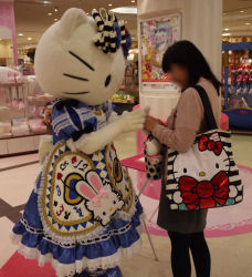その後に登場したミミィちゃんとも撮影しました。ミミィちゃんの時はもう空いていたので2回撮影出来ました。ミミィちゃん、私が持っているバッグのキティちゃんの裏にミミィちゃんが描かれているのをすっごく喜んでくれました。