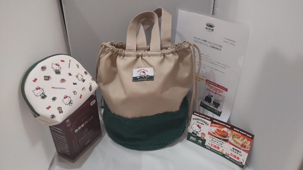 「ハローキティ×珈琲館 ハッピーバッグ2026」 プレゼントキャンペーンに応募したところ、幸運にも当選しました。嬉しい!